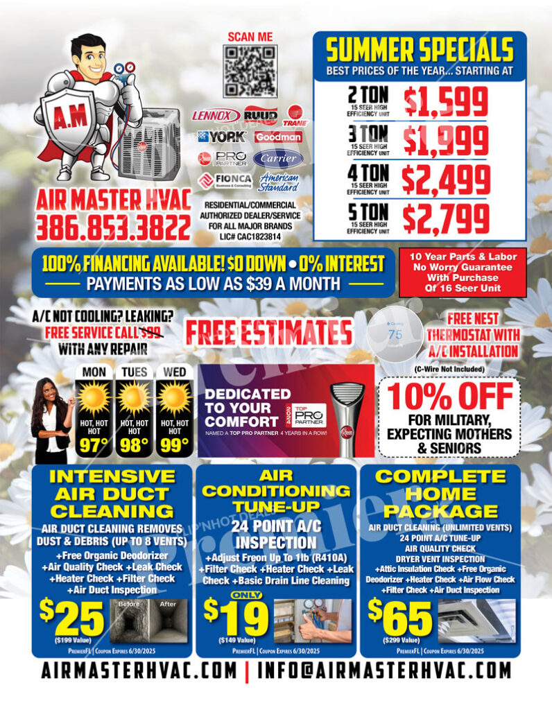 AirMasterHVAC Servicing Orlando And Surrounding Areas. We strive on our customer service making sure all our customer are 100% satisfied with the service they have requested from us. We specailize A/C Repair & Installation,New Air Duct Systems & Duct Cleaning, Attic Insullation & Water Damage. We have technicians that are licensed and insured for any services you require on call round the clock. Do not hesitate to give us a call with any of your needs or questions.
