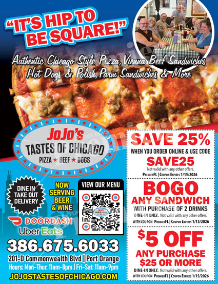 Located on Commonwealth Boulevard in Port Orange, JoJo’s Taste of Chicago is ideal for families, groups, and anyone searching for “Chicago-style pizza near me.” With dine-in, takeout, and delivery options available, JoJo’s continues to be a go-to destination for authentic Chicago flavors in a relaxed setting.
