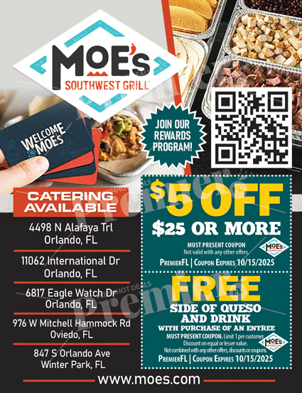 Moe’s Southwest Grill is a fast-casual restaurant chain known for its Mexican-style cuisine, including burritos, bowls, and tacos. They emphasize fresh ingredients and a vibrant dining atmosphere.
